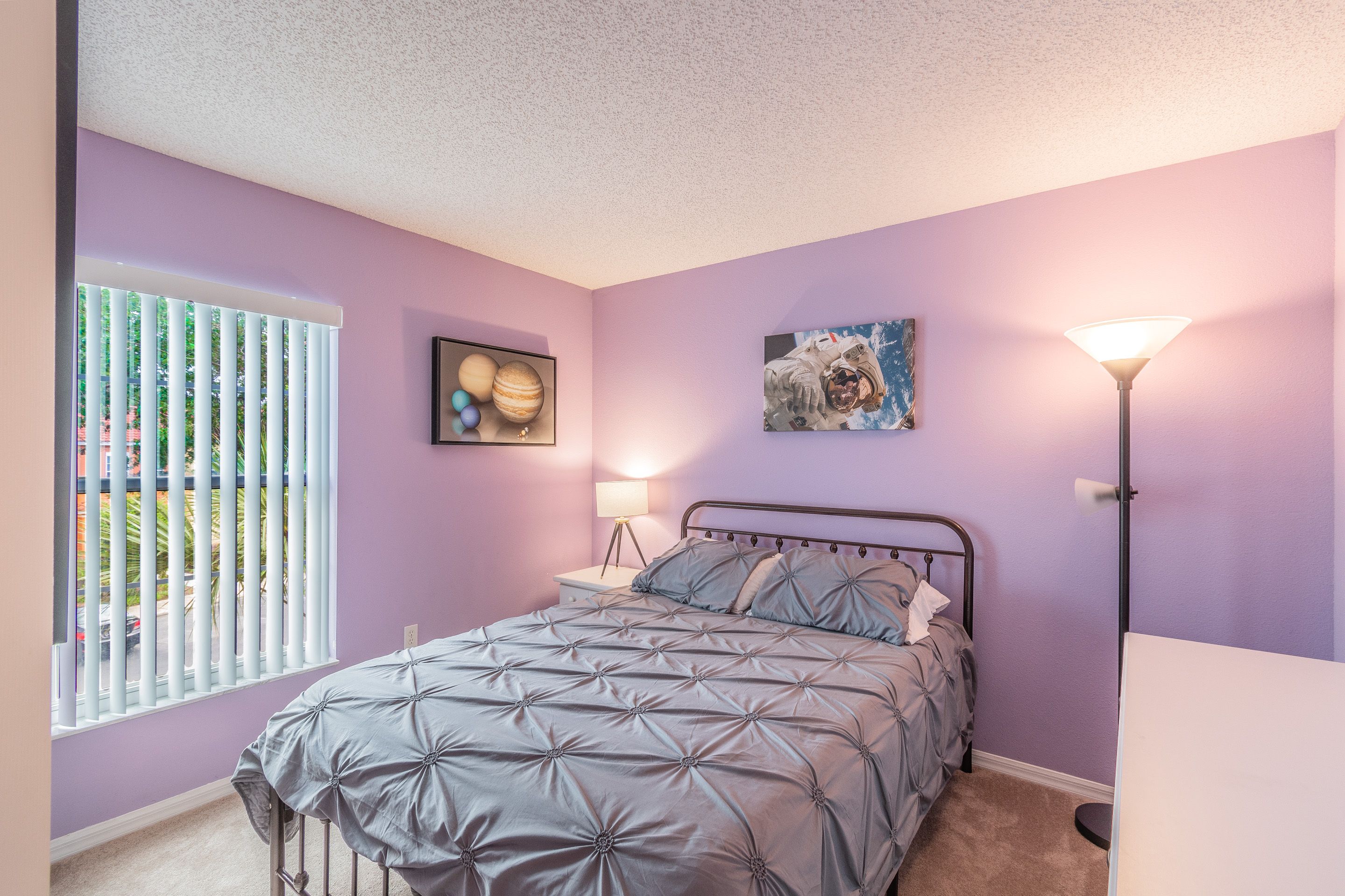 The third bedroom is furnished with a queen size bed, nightstand with lamp and a clock radio. It has its own closet space and an adjacent, shared family bathroom. All bedding, bed sheets and pillows are provided.