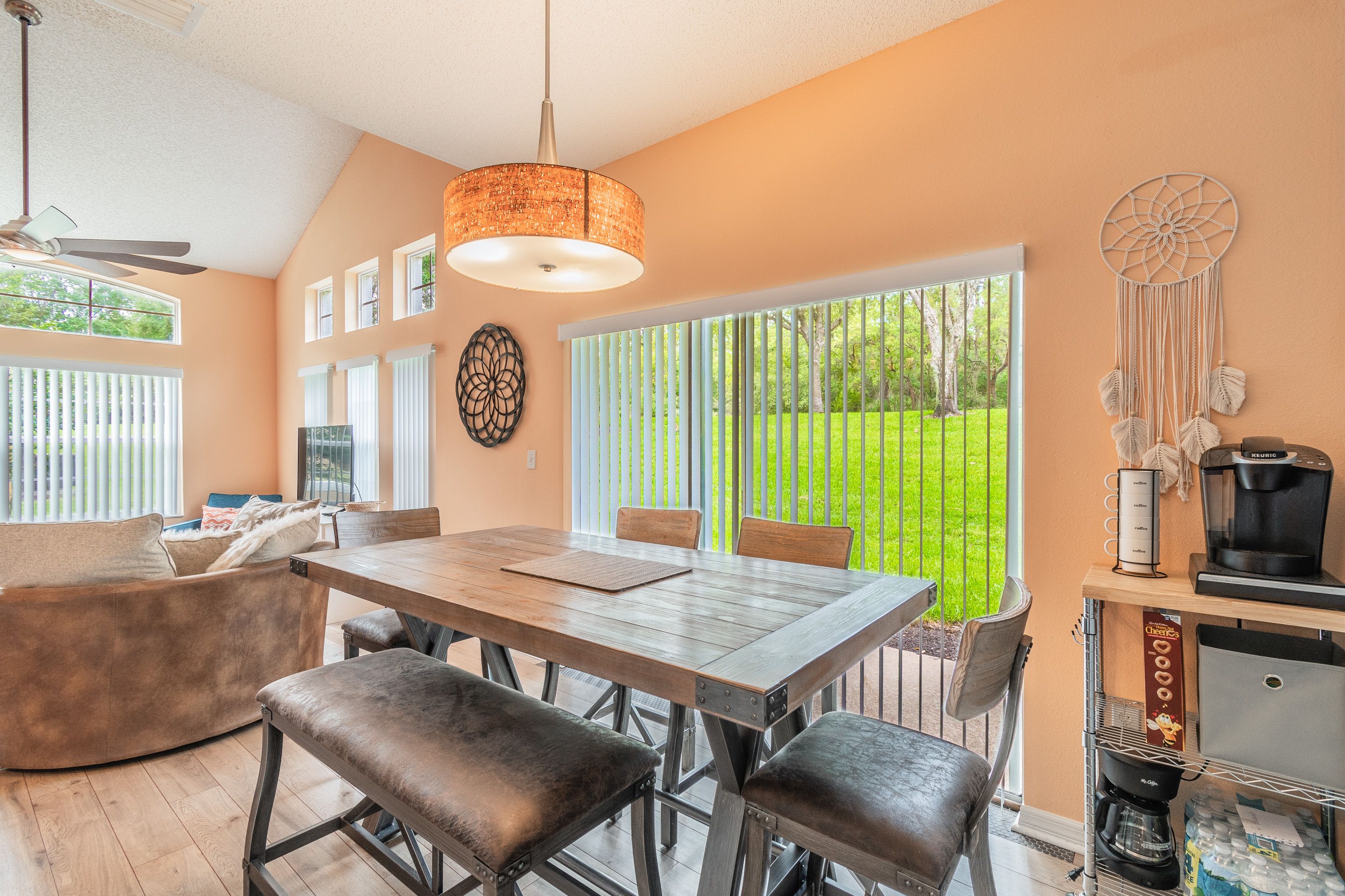 The Dining Area is well furnished with a dining table with all place settings.