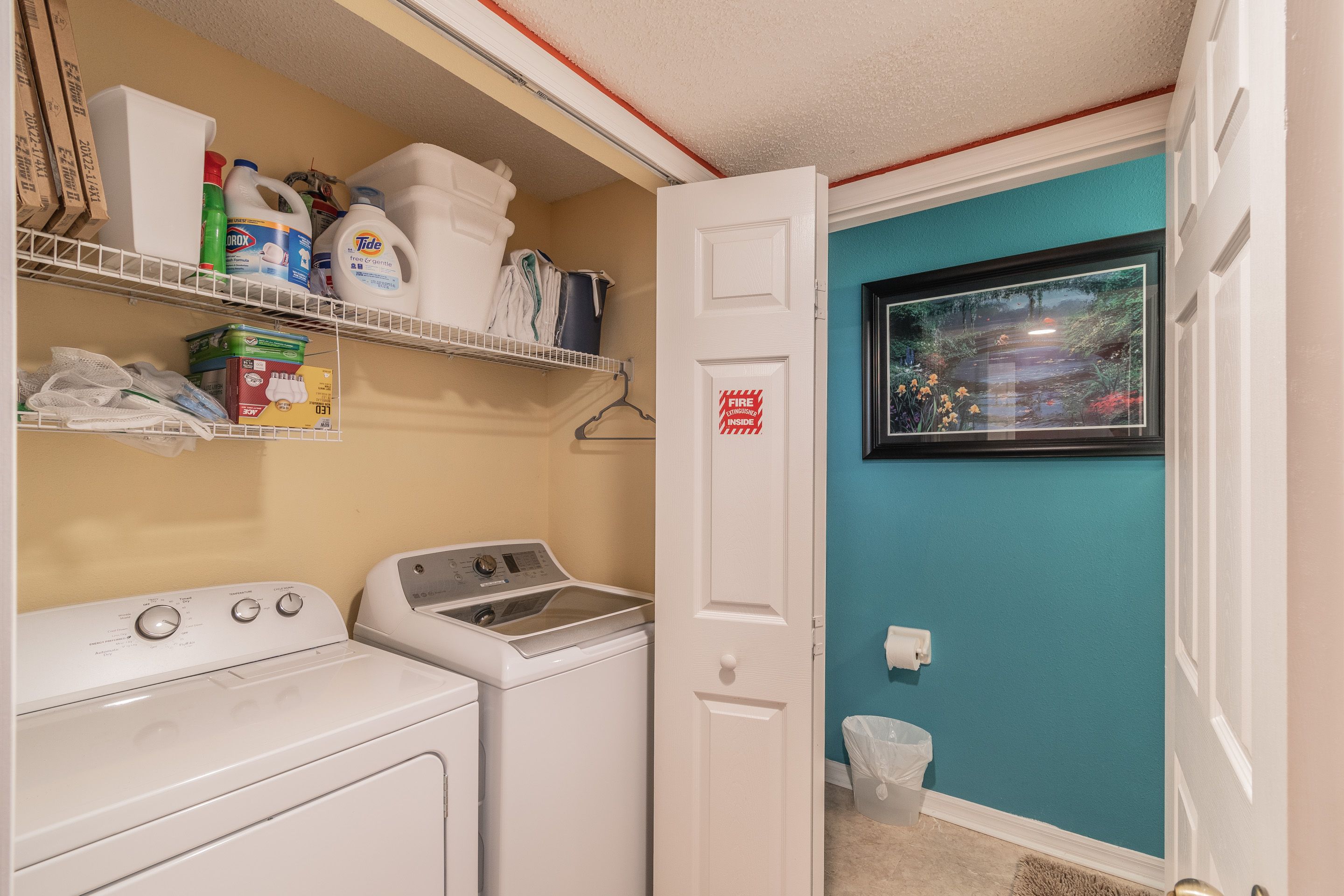 Our villa has a fully equipped laundry room with washer, dryer and ironing facilities. So, there is no need for our guests to run to the Laundromat. There is also a laundry basket, vacuum cleaner and mop and bucket in the laundry room.